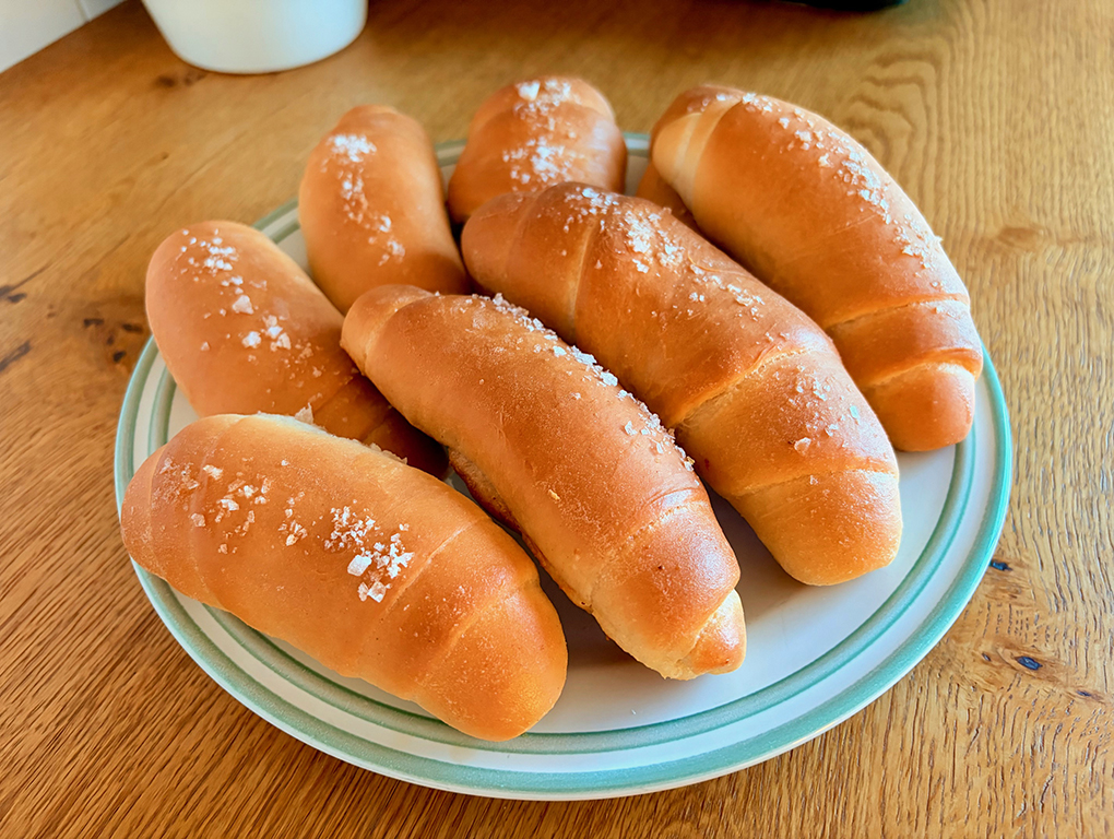 * daca nu s-a scurs destul unt in tava, topiti 20 gr unt intr-un vas mic si le ungeti - Sunt mai bune in ziua incare au fost coapte si a doua zi. Se pot reincalzi in air fryer (3 minute, la 160C). Sunt ideale cu lapte, sana sau taiate in doua si umplute cu crema de branza sau fasii subtiri de parmezan sau pecorino.