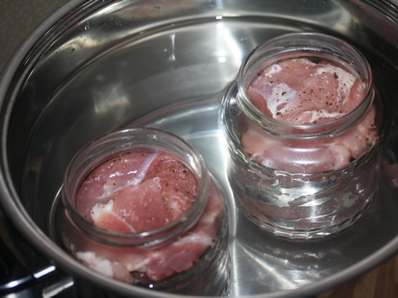 - Se aseaza borcanele intr-o oala larga (fara sa se atinga) si se adauga apa pana sub umerii borcanelor.