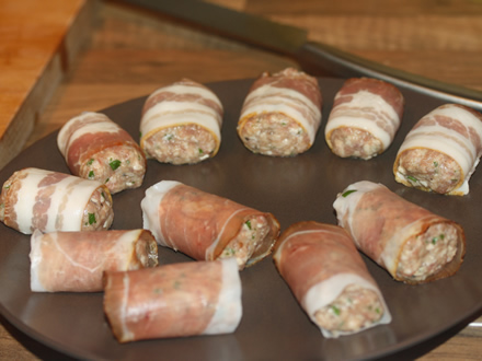 Chiftelele in bacon (cele din prim plan sunt invelite in speck)