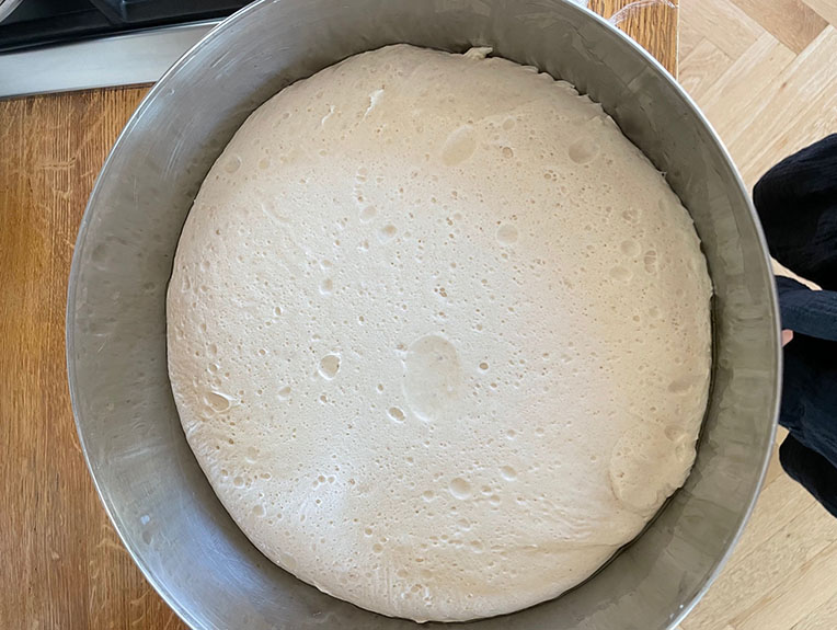 - Scoateti tava din frigider si lasati-l la crescut la loc caldut inca 1.5 ore, cat sa revina la temperatura camerei si sa mai creasca.